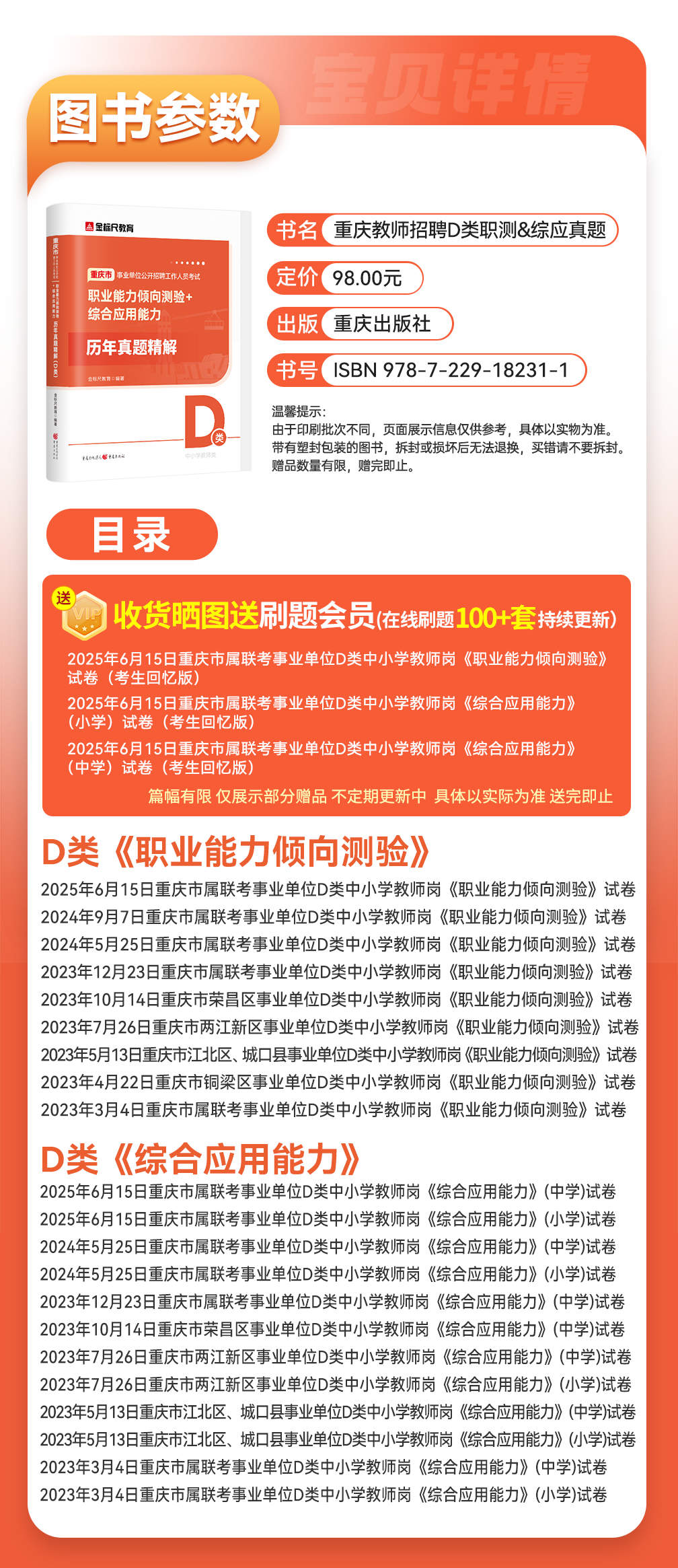 三支一扶·教育类】职测D教材/重庆真题+送23/24/25年写作&教育真题