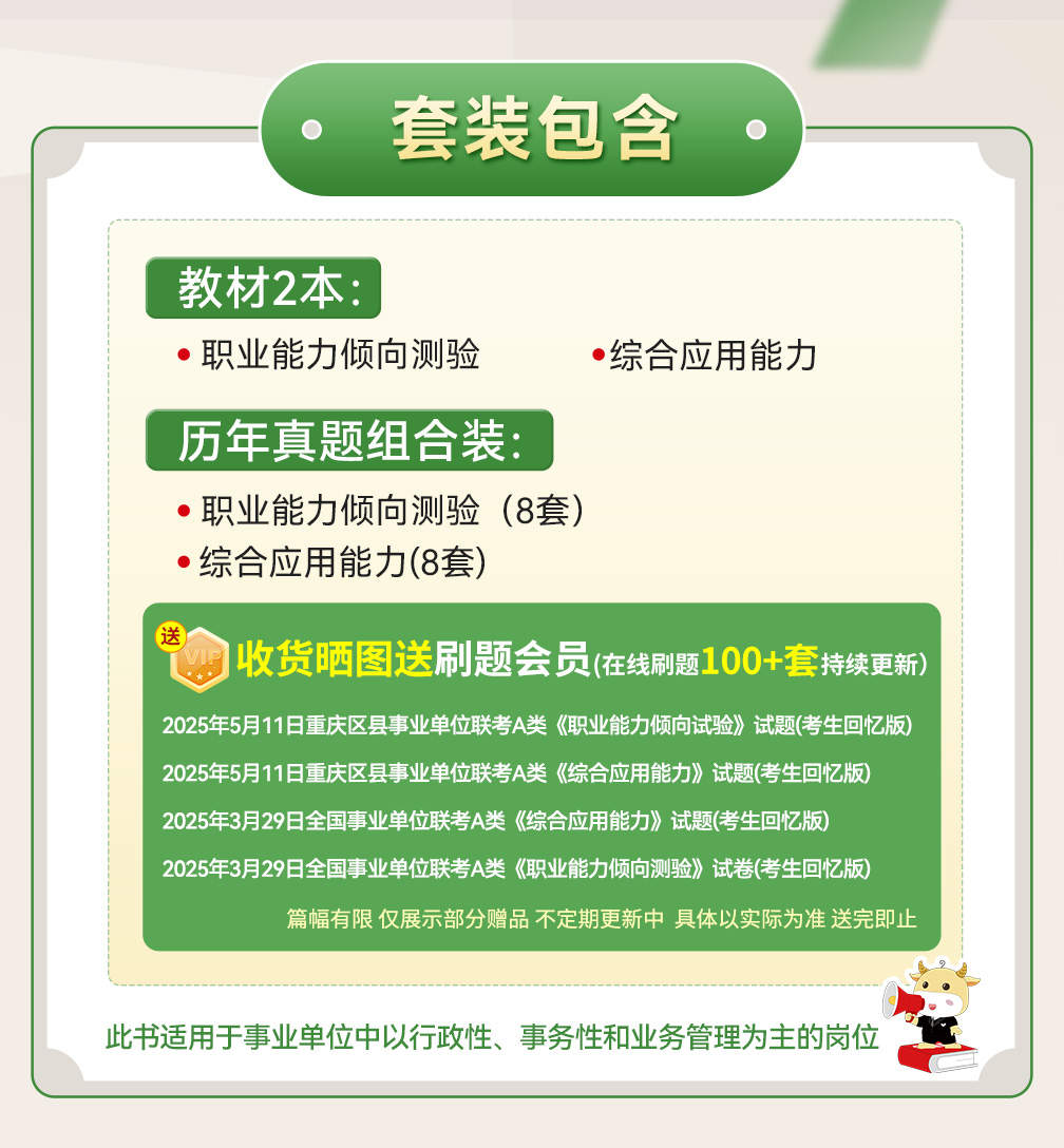 【左下角咨询客服免费领资料+免费答疑 】 书籍针对《综合管理A类》 ①每日前50名下单送25年在线刷真题会员 ②赠送视频课程领取流程,(购买后)在个人-我的优惠劵-点立即使用-然后回到-个人-我的课程中查看。 因为书籍是塑封包装拆封后不支持退换货