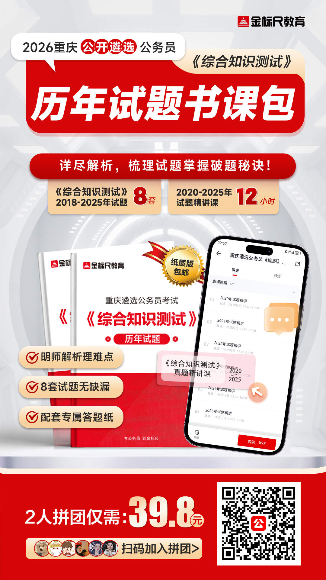 拼团39.8元!含8套试题+12小时试题精讲课!