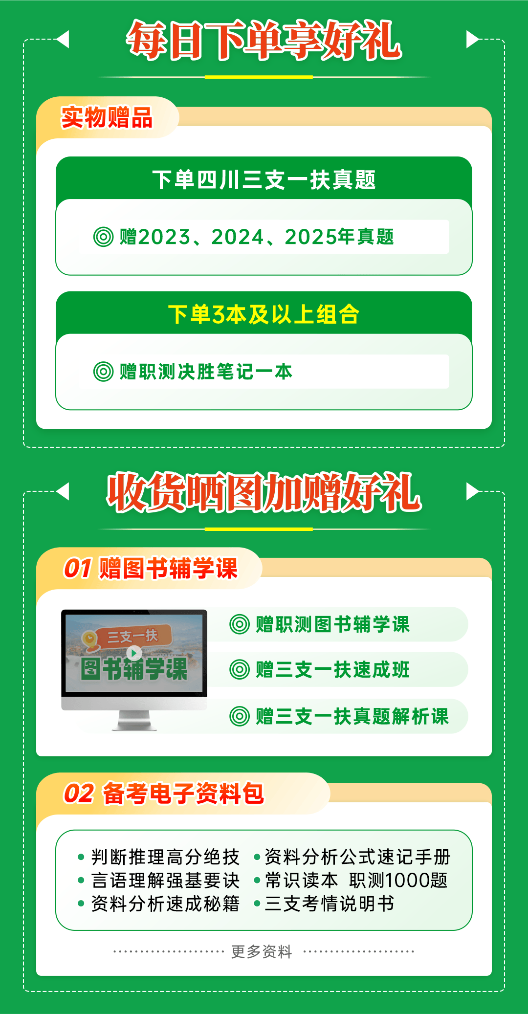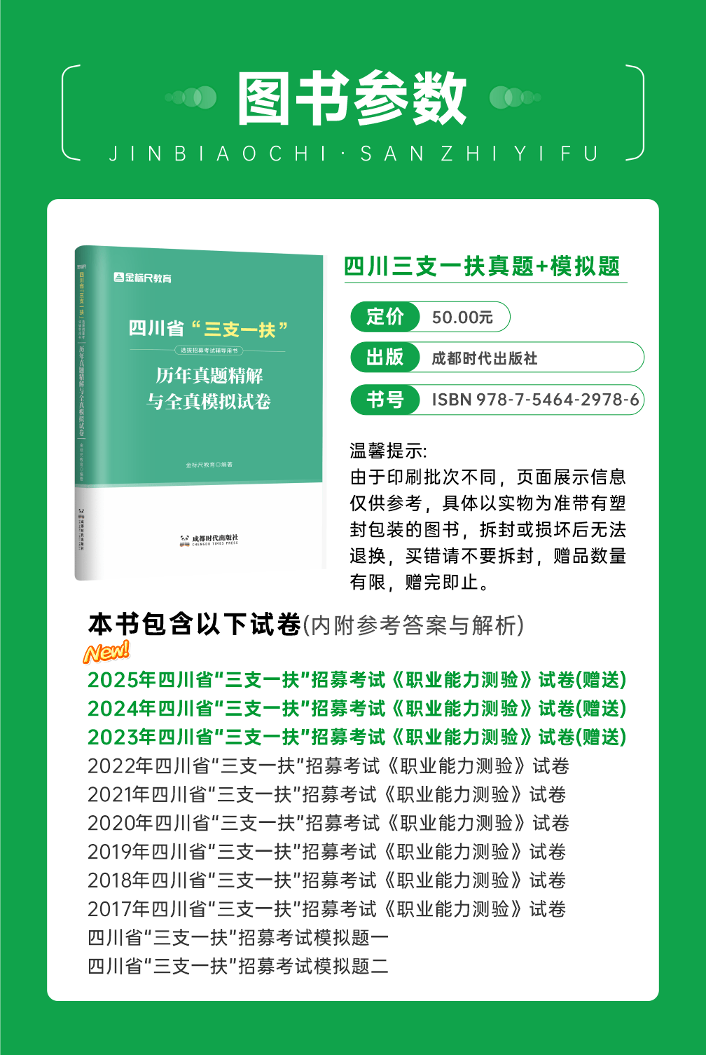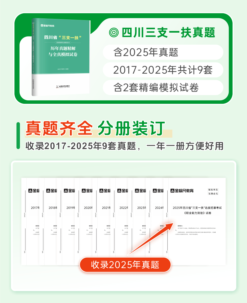 下单收货后添加(微信:18121879436)领取赠品电子资料;四川三支一扶真题,包含2017-2025年历年真题,适用于2026年四川三支一扶考试