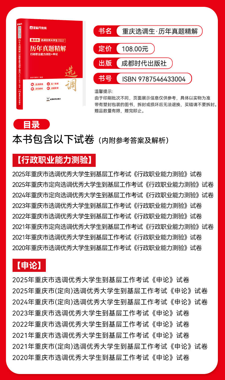 【左下角咨询客服免费领资料+免费答疑 】 ①行测&申论17-25年,共计20套 。 ②试卷分册装订,结合理论知识答案逐一解析,赠答题纸。 ③刷真题可以了解出题方向和难易度增强体验感。 ④温馨提示:书籍是塑封包装,拆封后不接受退换货。