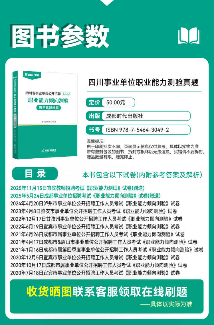 下单收货添加下单后添加(微信:18121879436)领取赠品电子资料;本书专为四川三支一扶考试科目编写,适用于四川三支一扶招募,《职业能力测验》科目笔试