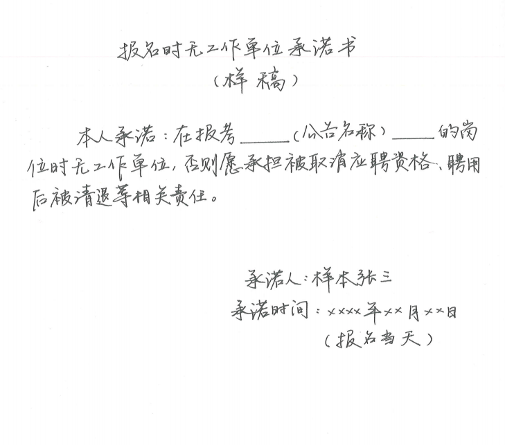③报名时无工作单位的2024年、2025年普通高校师范类本科毕业生、普通高校硕士研究生及以上学历毕业生及国(境)外同期硕士研究生及以上学历毕业且已完成学历(学位)认证的人员:本人有效居民身份证正反面(正反面)、毕业证书、学位证书、学历证书电子注册备案表(中国高等教育学生信息网下载)或教育部留学服务中心出具的学历(学位)认证书、符合应聘岗位学段学科要求的教师资格证、岗位要求的其他证书以及报名时无工作单位的证明材料和承诺书(附件4,本人手写签字确认)。毕业后从未落实工作单位的,应提供《毕业生就业推荐表》;曾经有工作单位但在报名前已经解除劳动关系的人员,应提供报名前最后一个工作单位的离职证明或解除劳动关系的证明材料。